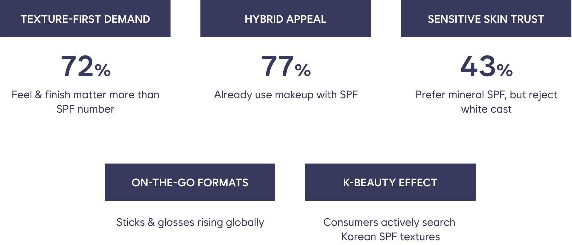 According to Mintel’s 2024–25 studies, consumers are shifting away from basic OTC sunscreens and demanding more advanced, beauty-driven solutions: