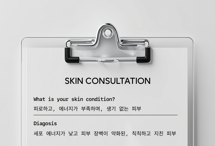 “당신의 피부는 세포 에너지와 재생 능력이 부족해요. 피부의 활력과 윤기를 되찾기 위해 NMN, NAD+ 와 EGF를 처방해드릴게요”