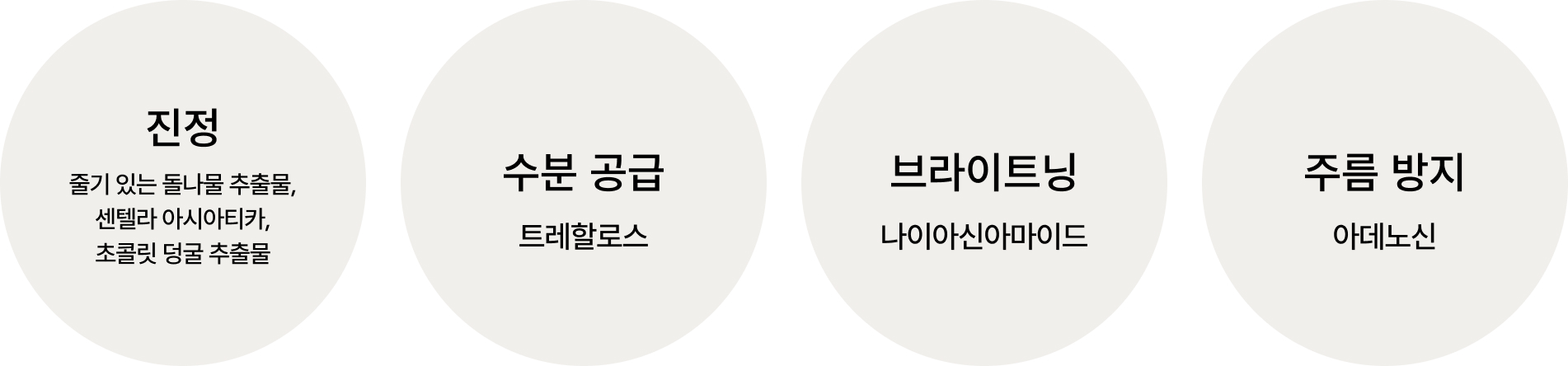 심층 보습: 트레할로스가 빠르게 흡수되어 하루 종일 피부를 촉촉하게 지켜줍니다.