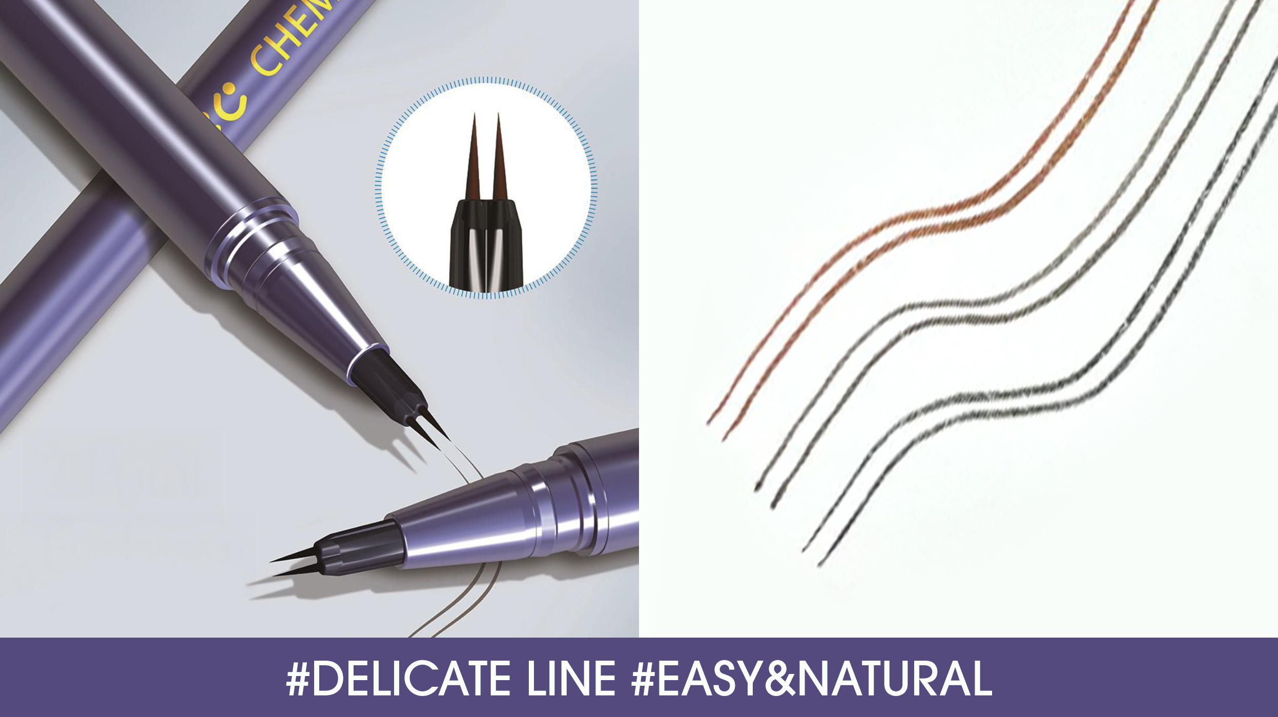 케미코스의 라이너는 단순히 잘 만들어진 제품이 아닙니다 — 한 번의 정교한 터치가 눈매 전체의 무드를 바꿔놓습니다. 염료가 아닌 순수 안료(pigment) 기반으로 깊고 깨끗한 색감을 구현하며, 미세 분산 기술을 통해 라인이 끊기지 않고 또렷하게 그려집니다. 팁 구조는 손의 움직임을 자연스럽게 따라가도록 설계되어 얇고 섬세한 라인도 안정적으로 그려집니다.
